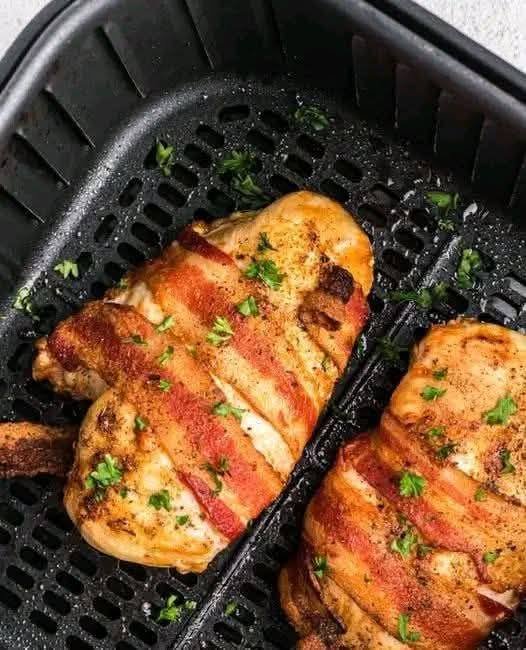 Bacon-wrapped chicken is a crowd-pleaser, and the air fryer makes it even easier to enjoy a restaurant-style meal at home.