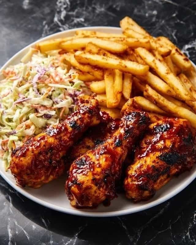 Whether you’re cooking for a crowd or enjoying a quiet dinner at home, this plate delivers juicy chicken, golden fries, and a burst of classic BBQ flavor in every bite.