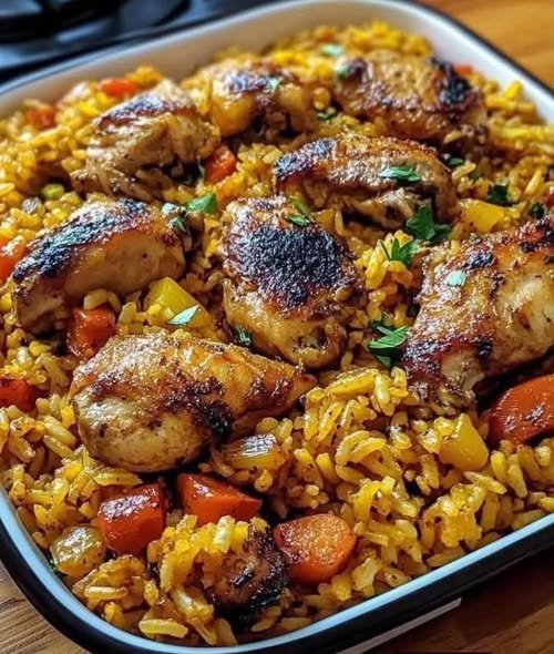 Easy to prepare and packed with bold flavors, this recipe is perfect for anyone who loves simple one-pot meals with a tropical twist. Once you try it, it may become a regular favorite in your kitchen. 🍗🍚🌴